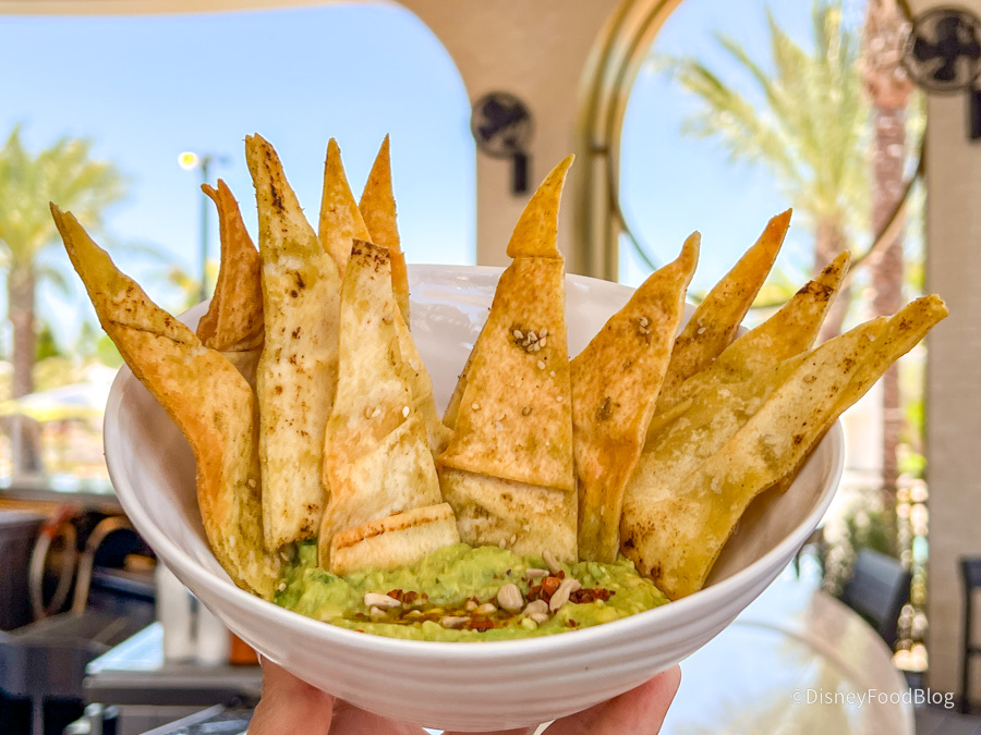 - Chips and Dip — smashed avocado, Aleppo pepper, sunflower seeds, and Extra Virgin Olive Oil, served with pita chips