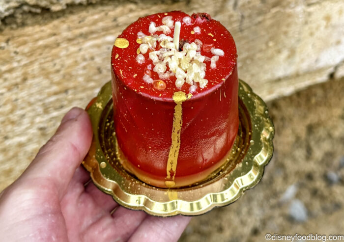 - Firecracker Marshmallow Wand: Marshmallow on a stick dipped in caramel and red-colored white chocolate decorated with yellow sanding sugar, a piece of red licorice, yellow-colored white chocolate, and a gold and red flower chocolate piece