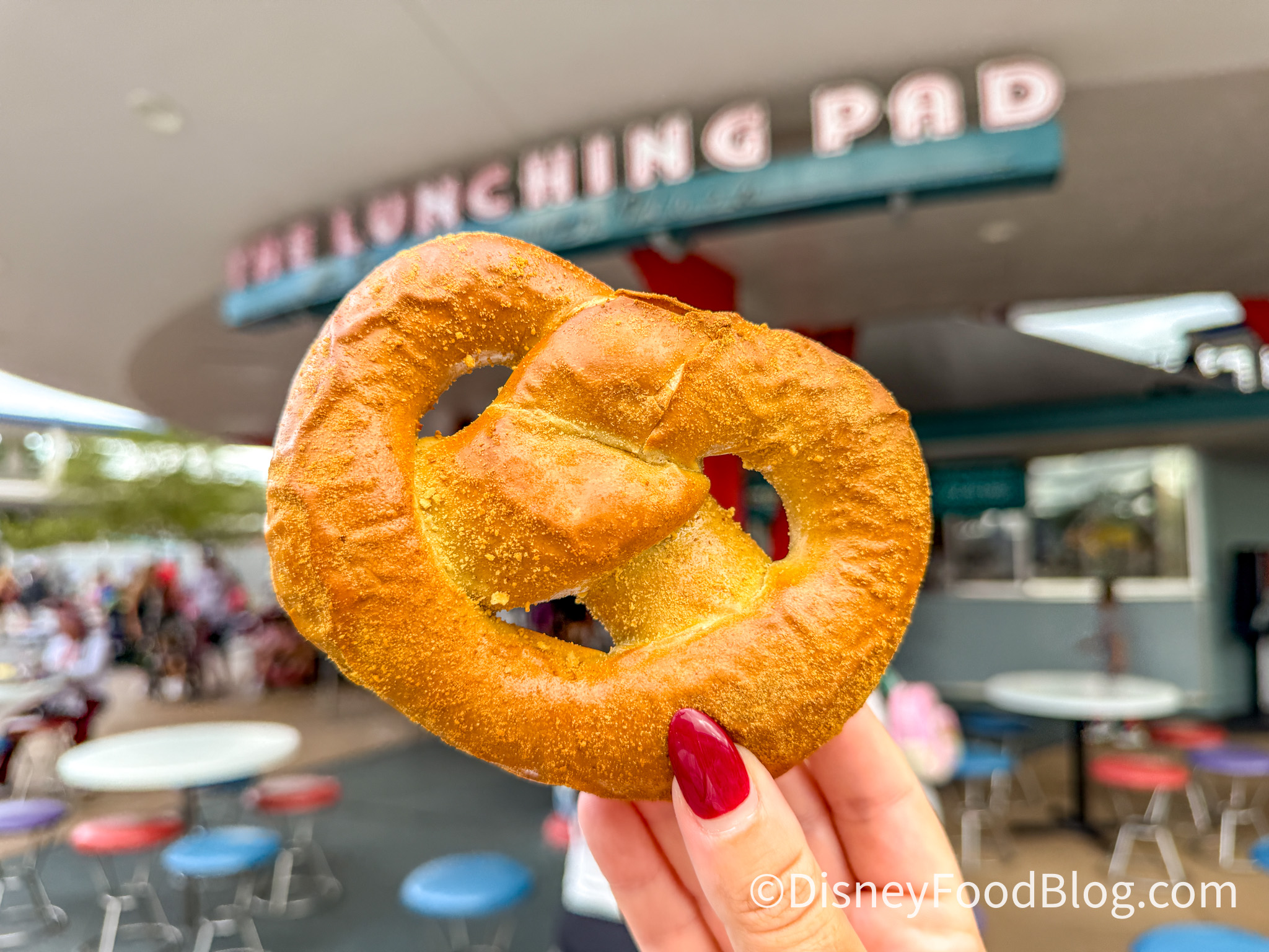 The Lunching Pad presents a very limited number of quick service entrees (including over-the-top hot dogs), but it’s a decent place for a snack: specifically, we’re talkin’ specialty pretzels like the Cream Cheese Pretzel — a DFB favorite!