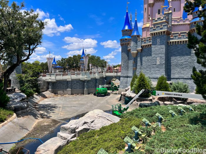 The moat at Cinderella Castle is being slowly filled in after it’s been empty for construction recently.