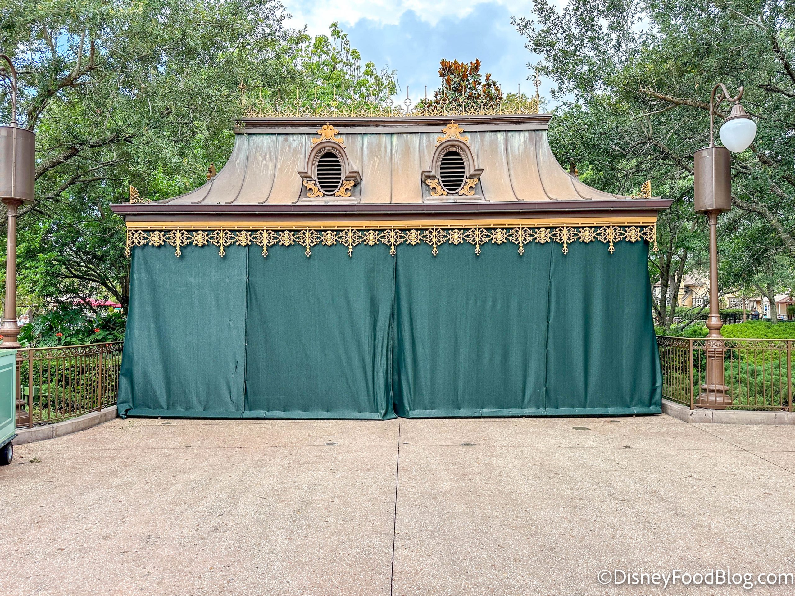 The snack stand to the left of the castle appears to be closed, potentially for some refurbishment.