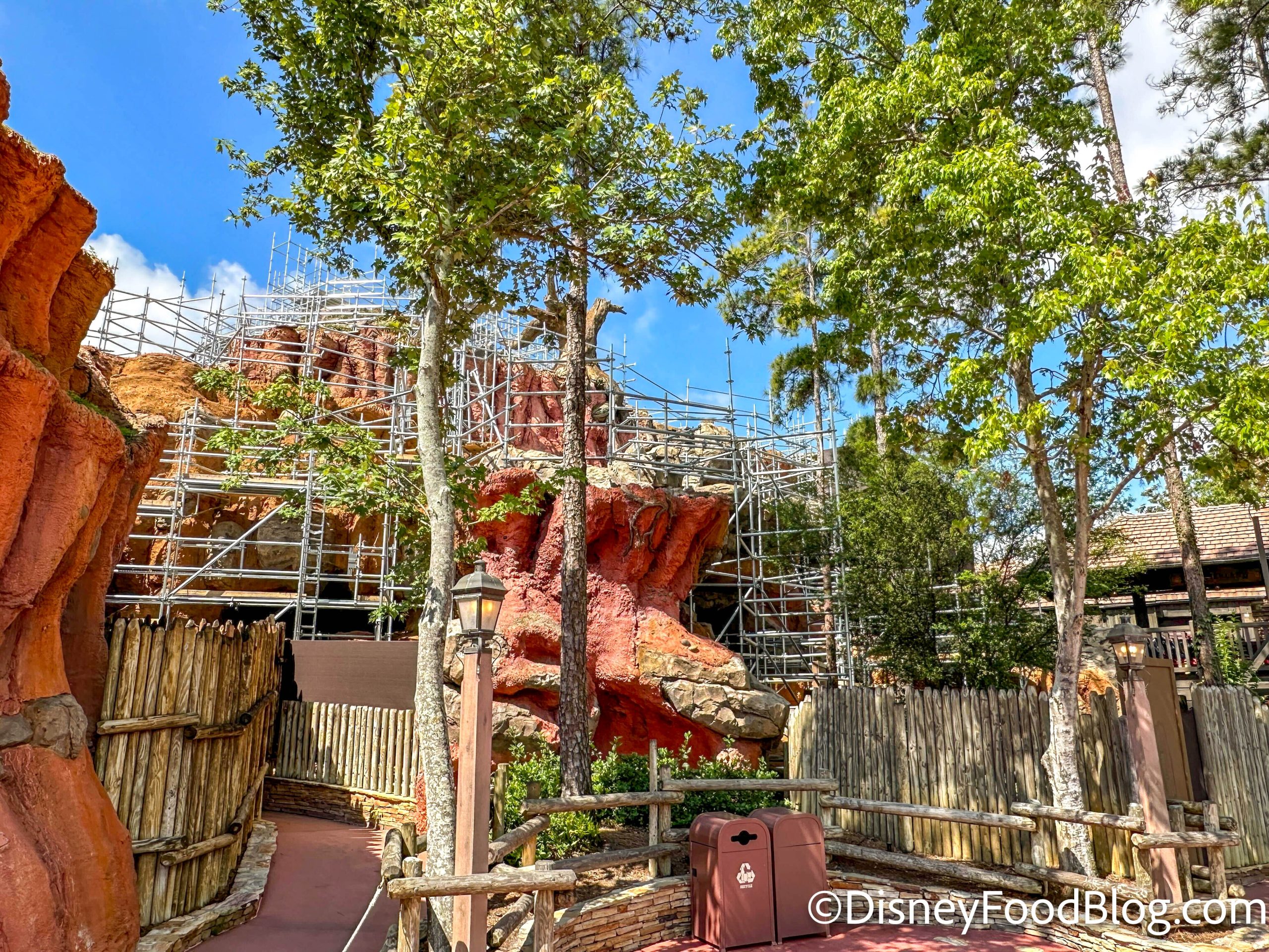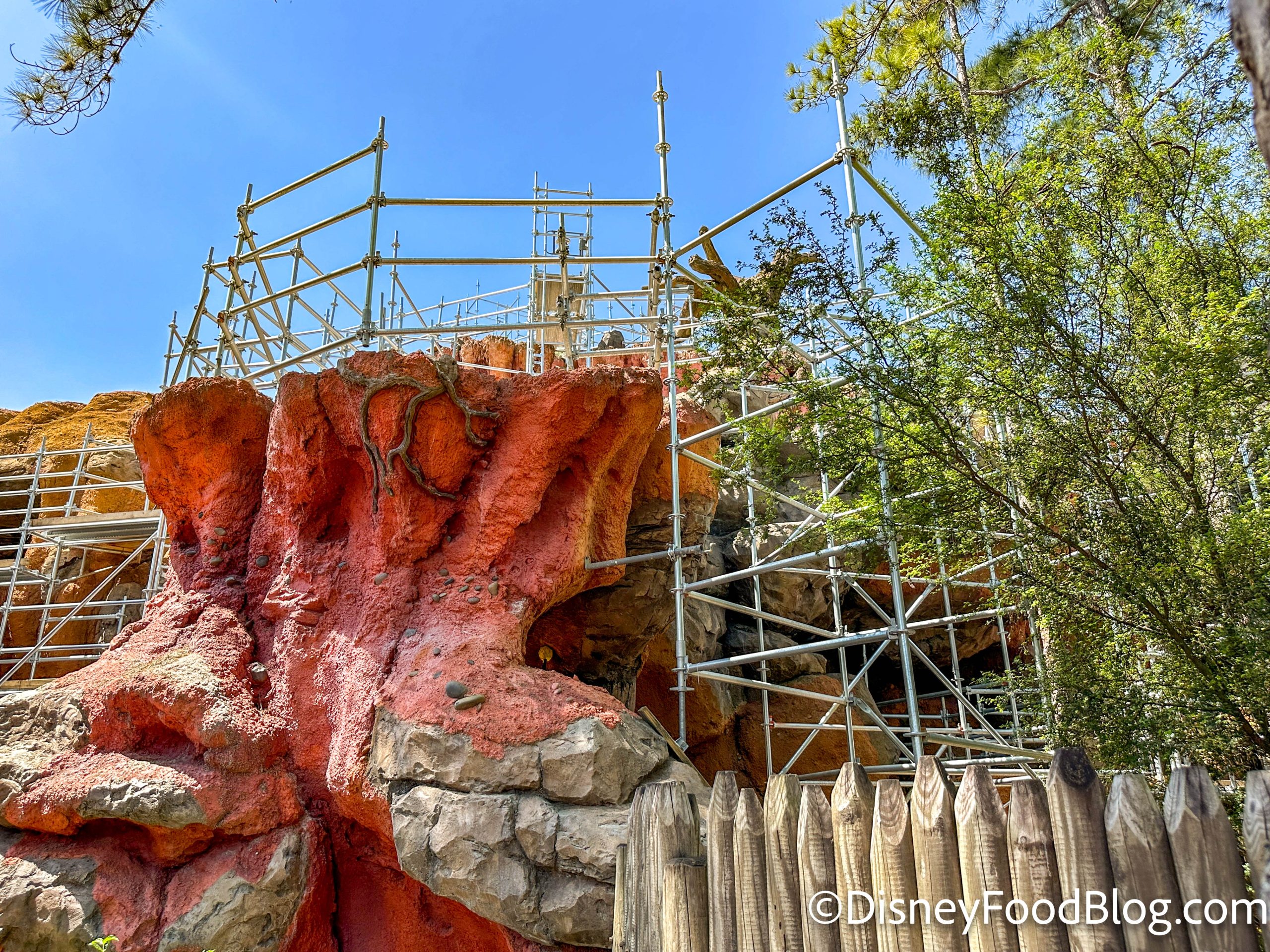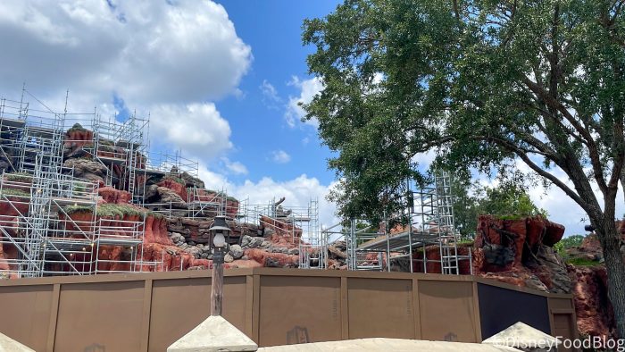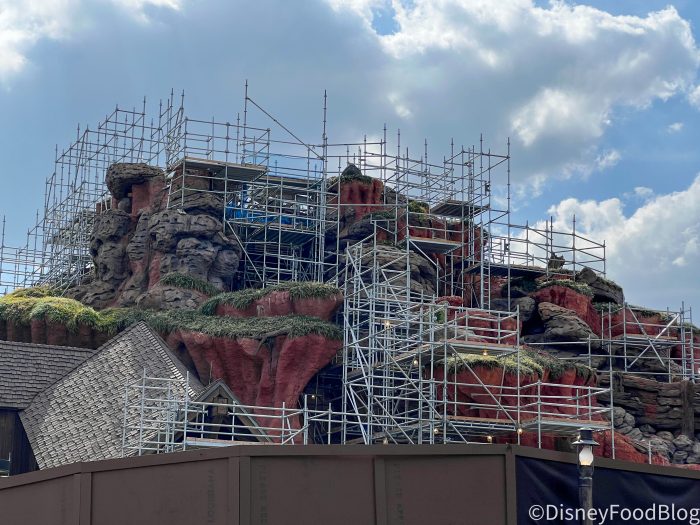 We noticed that more scaffolding has appeared around Tiana’s Bayou Adventure, particularly on the sides of the mountain. It looks like the construction is moving outward from the middle now!