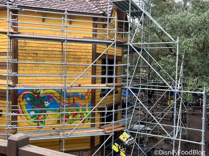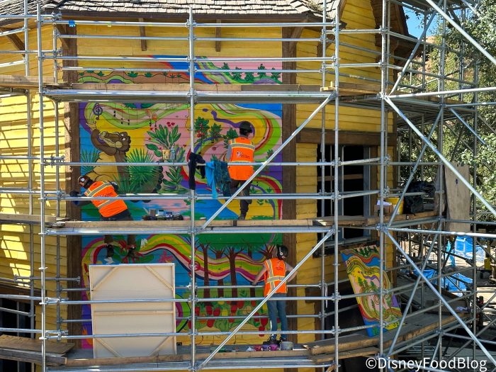 - We’ve got some updated queue construction for you! Scaffolding has come down from around the mural where it was being painted.