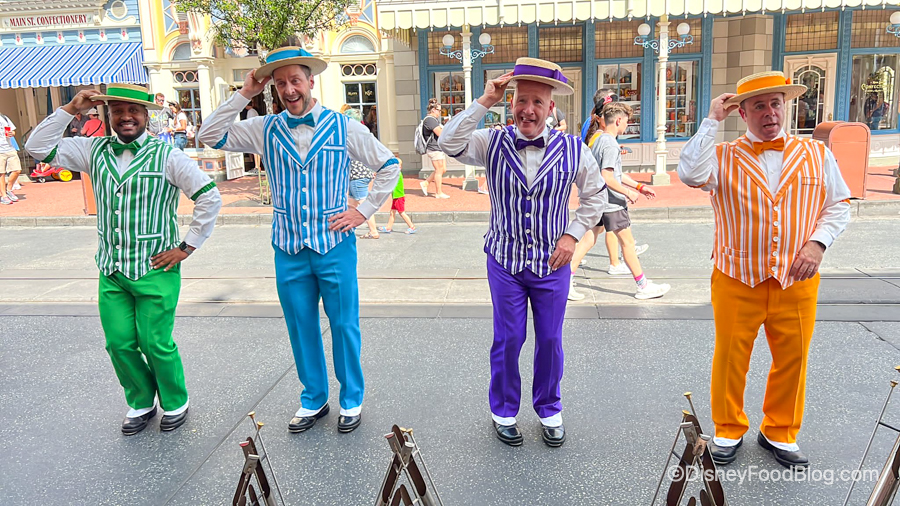 Serving up a little humor with plenty of song ‘n dance, the Dapper Dans cannot be missed, so be sure to check My Disney Experience or the Information Boards posted around the park for performance times throughout the day.