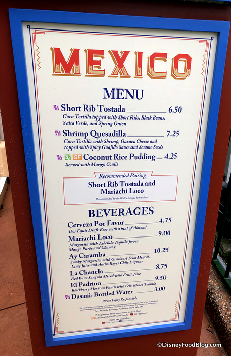 2018 Epcot Food and Wine Festival Mexico Booth Menu