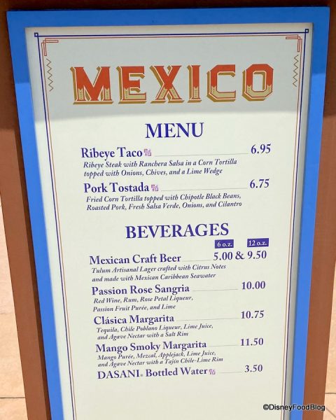 2020 Epcot Food and Wine Festival Mexico Booth Menu