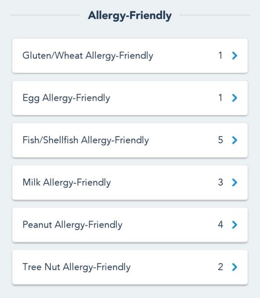 Upon selecting, you’ll see a list of Allergies that may be accommodated.