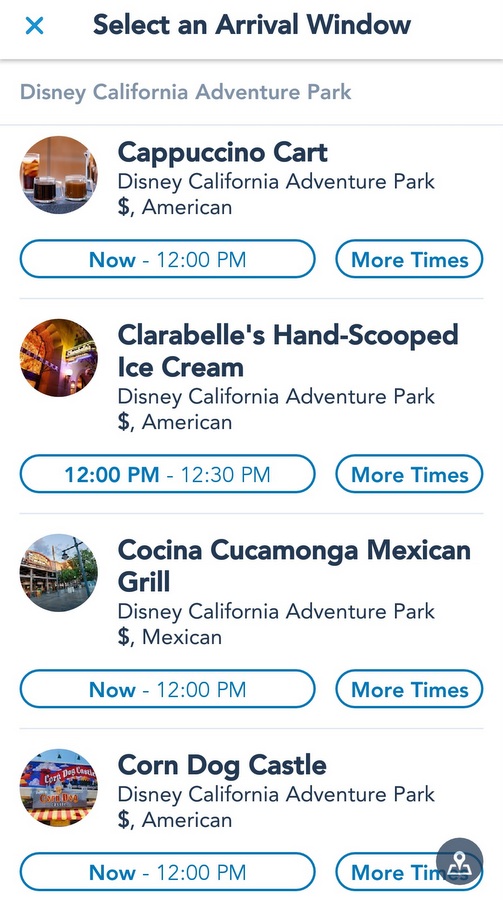 Please note that select third-party restaurants in Downtown Disney also offer Mobile Ordering; however, these locations offer the service via the restaurant’s own app or website (as opposed to via the Disneyland app):