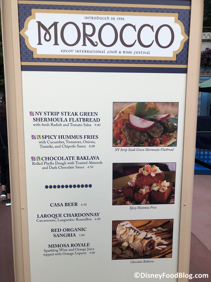 2019 Epcot Food and Wine Festival Morocco Booth Menu