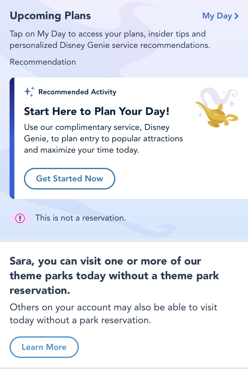 And, just for fun… A vacation countdown clock is accessible to all Walt Disney World Resort and Disneyland Resort guests with a hotel reservation. To find it, first navigate to the home screen of your My Disney Experience app.