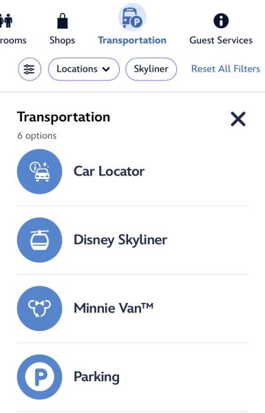 Disney has introduced a “Transportation” portion in the My Disney Experience app to find information about the Disney Skyliner, Minnie Vans, parking, Disney buses, and more.