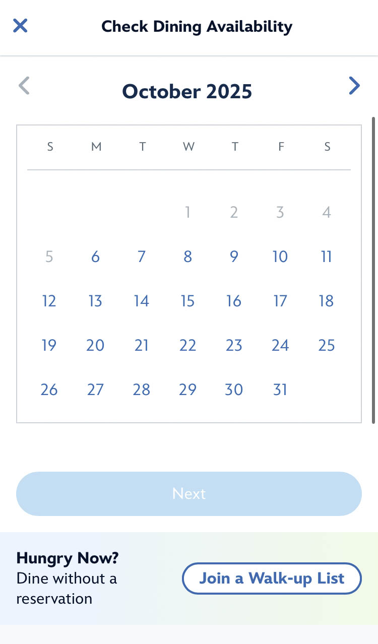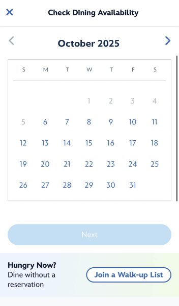 On My Disney Experience, the process starts by selecting Check Dining Availability. The window to make Advance Dining Reservations opens up 60-days ahead of when you wish to dine, and you can learn more about the process by clicking here.
