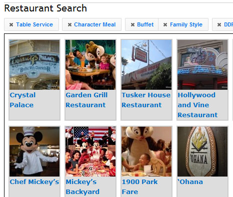 Mix and match from dozens of options, then click on any resulting restaurant to see details, check menus, and read Disney Food Blog posts about those locations.