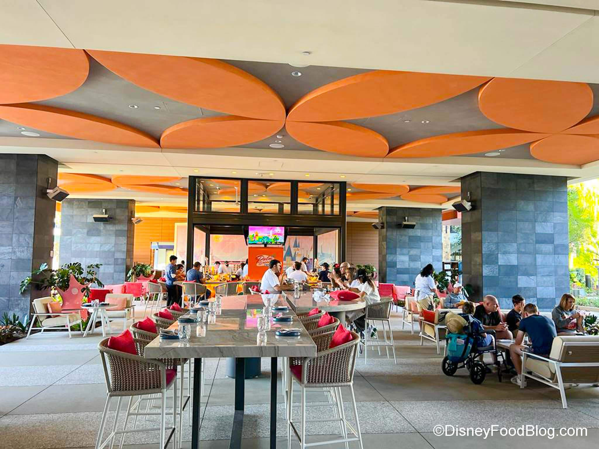 This outdoor bar features “modern décor inspired by the imaginative artistry of Disney Legend, Mary Blair.” Look out for plenty of colorful Disney art and nods to some classic Disney films, plus a few references to Disneyland Park!