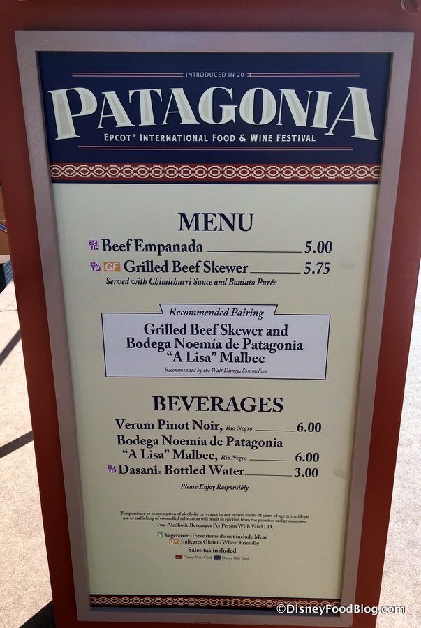 2017 Epcot Food and Wine Festival Patagonia Booth Menu