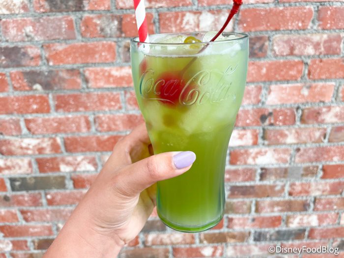 There’s a NEW shamrock drink in town, courtesy of the Coca-Cola Store rooftop Beverage Bar in Disney Springs! It’s called the Shamrock Sour, and it’s made with Fanta Melon Frosty, Jameson Irish Whiskey, Lemon Juice, and for a bit of pop, Green Boba! ($15.00 at the Coca-Cola Store Rooftop Bar)