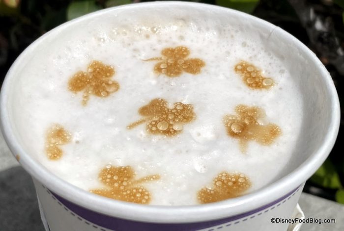 Add a lil’ bit of festive Shamrock LATTE ART to your hot beverage! (We ordered, of course, an Irish Cream Latte!) (Latte Art is an extra 50 cents to add to your hot drink at Joffrey’s Coffee and Tea Company in Disney Springs)