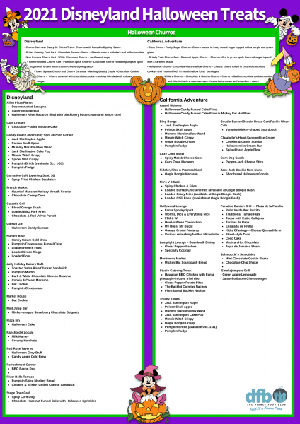 First things first: You’ve got to know where to scare up all these spooky and autumnal delights, right? Right! That’s why we’ve created the FREE DFB-exclusive 2021 Disneyland Halloween Treats printable for you! Simply click the photo below to download and print our FULL printable!
