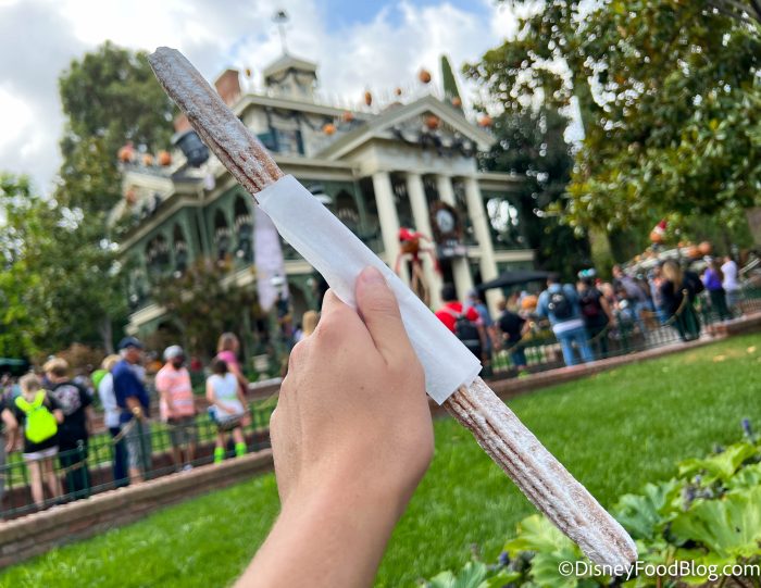 We found this spooky snack at the churro cart across from Haunted Mansion for $5.75.