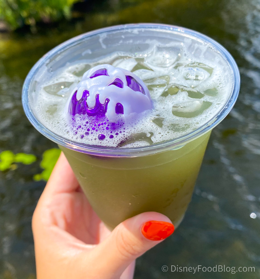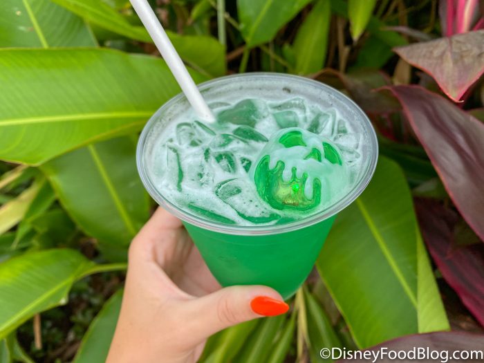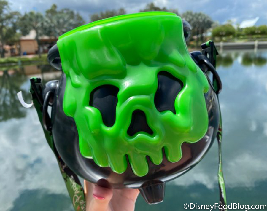Disney’s Caribbean Beach Resort is also getting spoooooooky… with a Spooky Rum Punch! This drink has Caribbean rum, sour apple liqueur, and cranberry juice garnished with a Purple Poison Apple Novelty Glow Cube. ($13.00 at Banana Cabana)