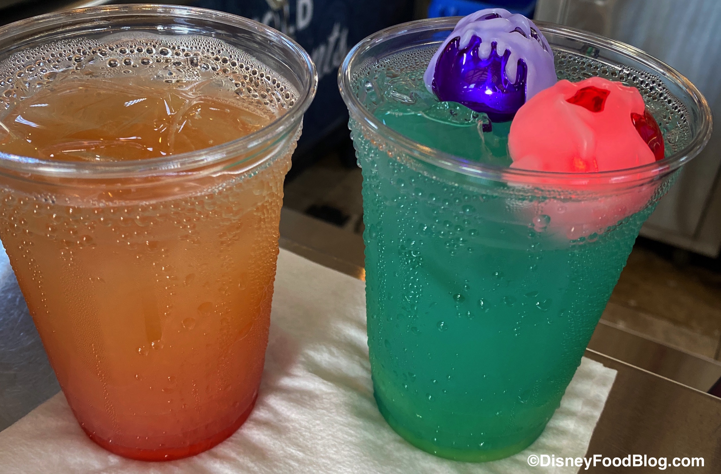 The Pop’s Potion cocktail has popped up once again at Petals Pool Bar in Pop Century Resort! The sinister elixir is mixed with coconut rum, Midori, pineapple juice, orange juice, Sprite, and Blue Curacao. ($16.00 including Poison Apple Glow Cube at Petals Pool Bar)