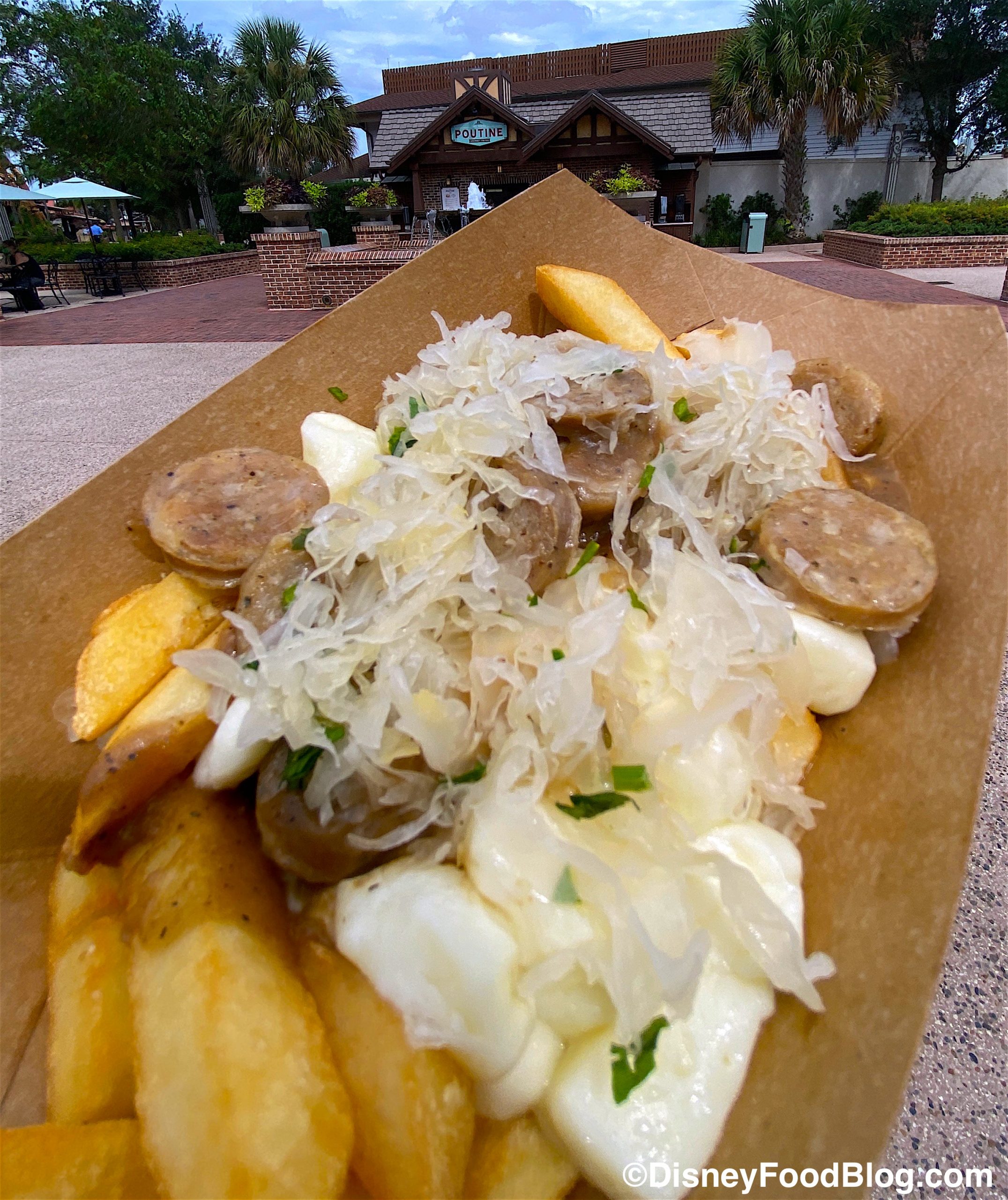 The JUMBO Not-So-Poison Apple Cupcake is a massive spiced apple cupcake with pecan crunch hiding underneath all that buttercream. It comes back each year with good reason. ($6.99 at Pinocchio Village Haus)
