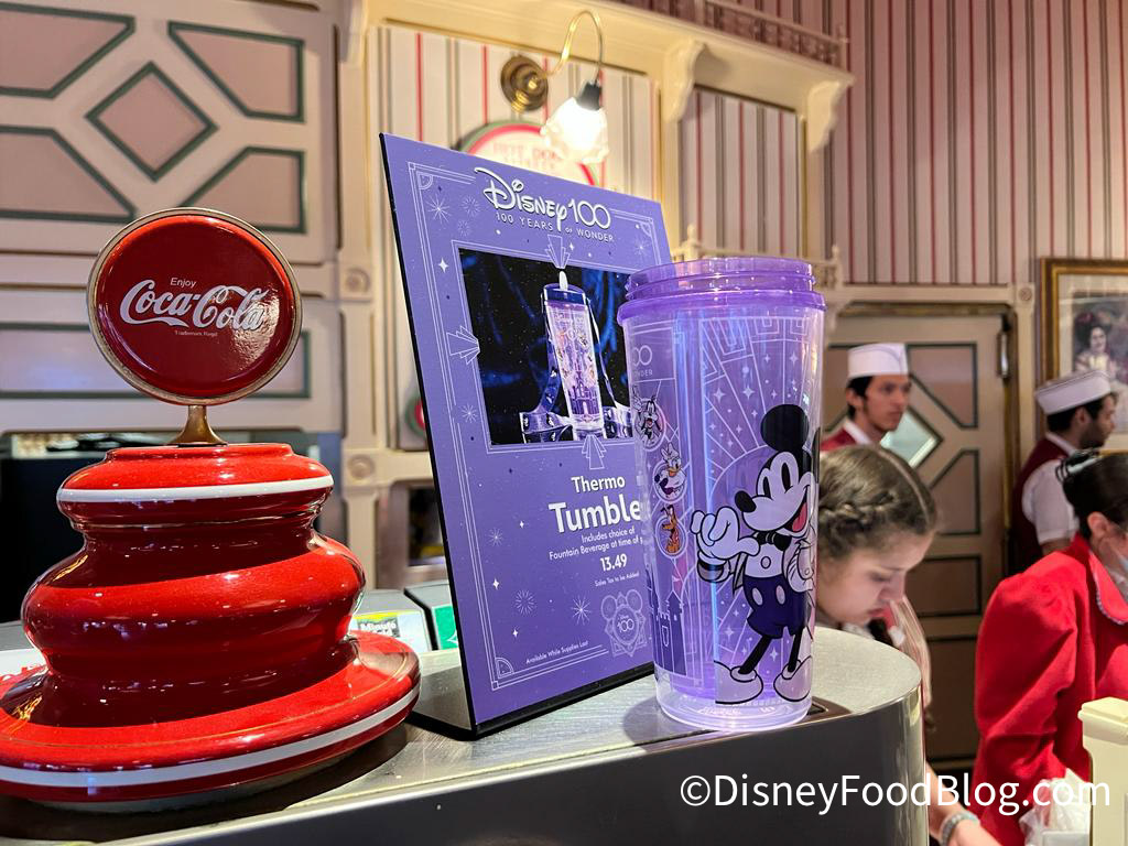 A new Disney100 Travel Tumbler with a Lanyard, along with several other novelty items, are available at BOTH parks.