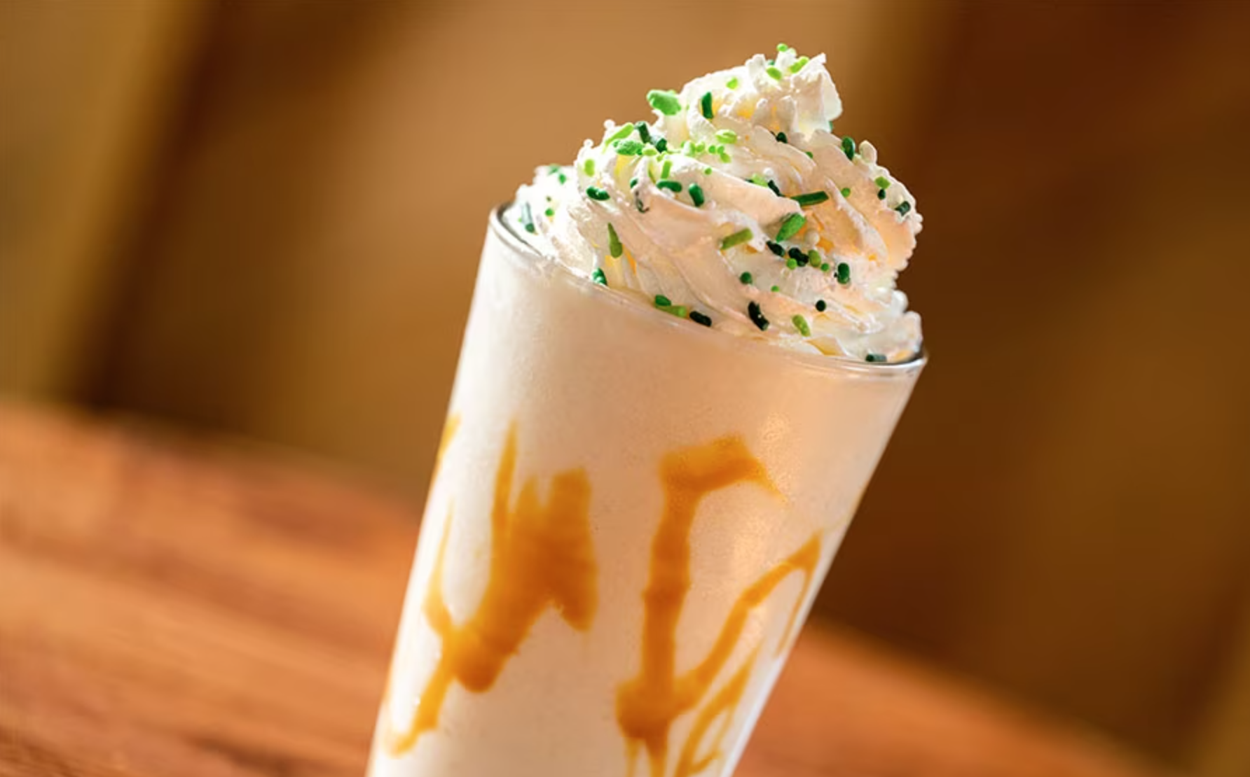 - St Patrick’s Day Shake: Vanilla gelato blended with dark caramel sauce, Irish cream syrup, and toasted marshmallow syrup topped with whipped cream, caramel, and green sprinkles (Non-alcoholic beverage)
