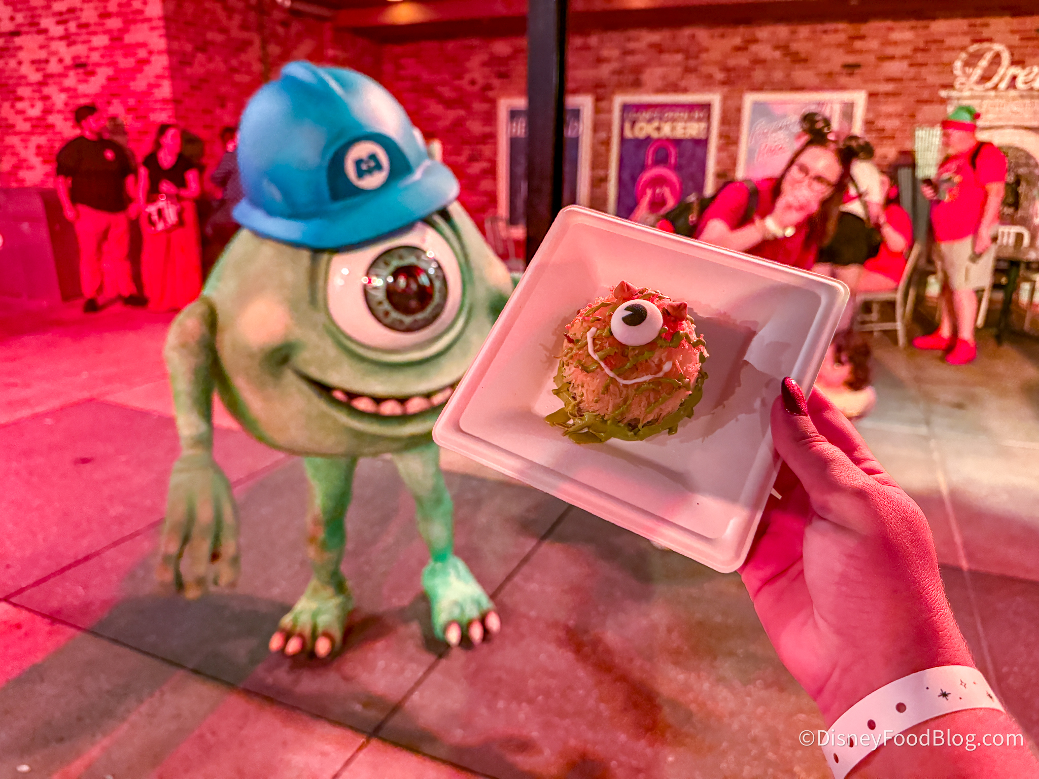 Market in Pixar Plaza is where you can pick up the new Mike-aroon, a toasted coconut cookie with green white chocolate and topped with a sugar eye for $5.29.