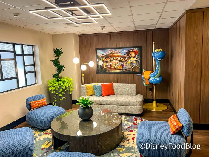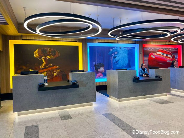 The lobby has been completely transformed with Pixar theming, characters, and more.