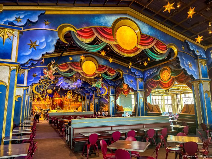 Universal shares that Pizza Moon is “an early 1900s Victorian theater converted into a spectacular eatery.” The whimsical vibe that starts on the outside continues on the inside, featuring cardboard cutout-like scene decorations like you might find in an old Victorian theater. You’ll definitely want to explore!