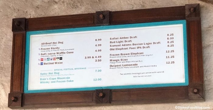 2018 Epcot Food and Wine Festival Refreshment Outpost Booth Menu