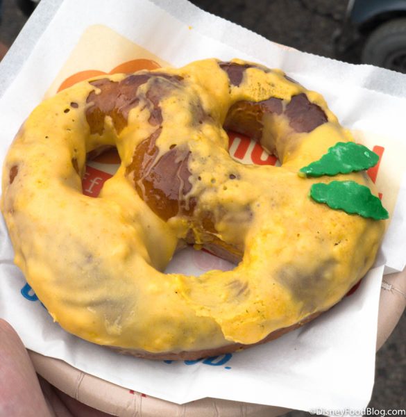 There is a story behind this treat, and it’s the biggest mystery of the holiday season! The Pumpkin Spice dusted Pretzel is dipped in orange icing, and definitely tasted better than it looked. Since then, it has disappeared and reappeared in the parks! You can currently find it for $6.79 at Thirsty River Bar and Trek Snacks.