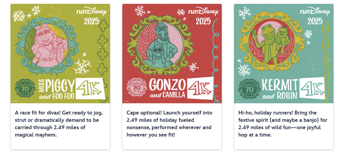 For the 2023 holiday season, a virtual run series dubbed the 12Ks of Christmas made its debut, and it is running again (HA!) from December 1-31, 2025! This year, the theme honors The Muppets’ 70th anniversary celebration!