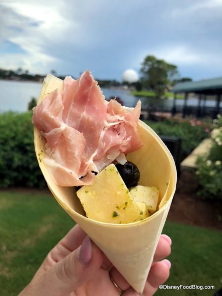 - Charcuterie in a Cone with imported Spanish Meats, Cheeses and Olives with an Herb Vinaigrette – $6.50, DDP Snack Eligible