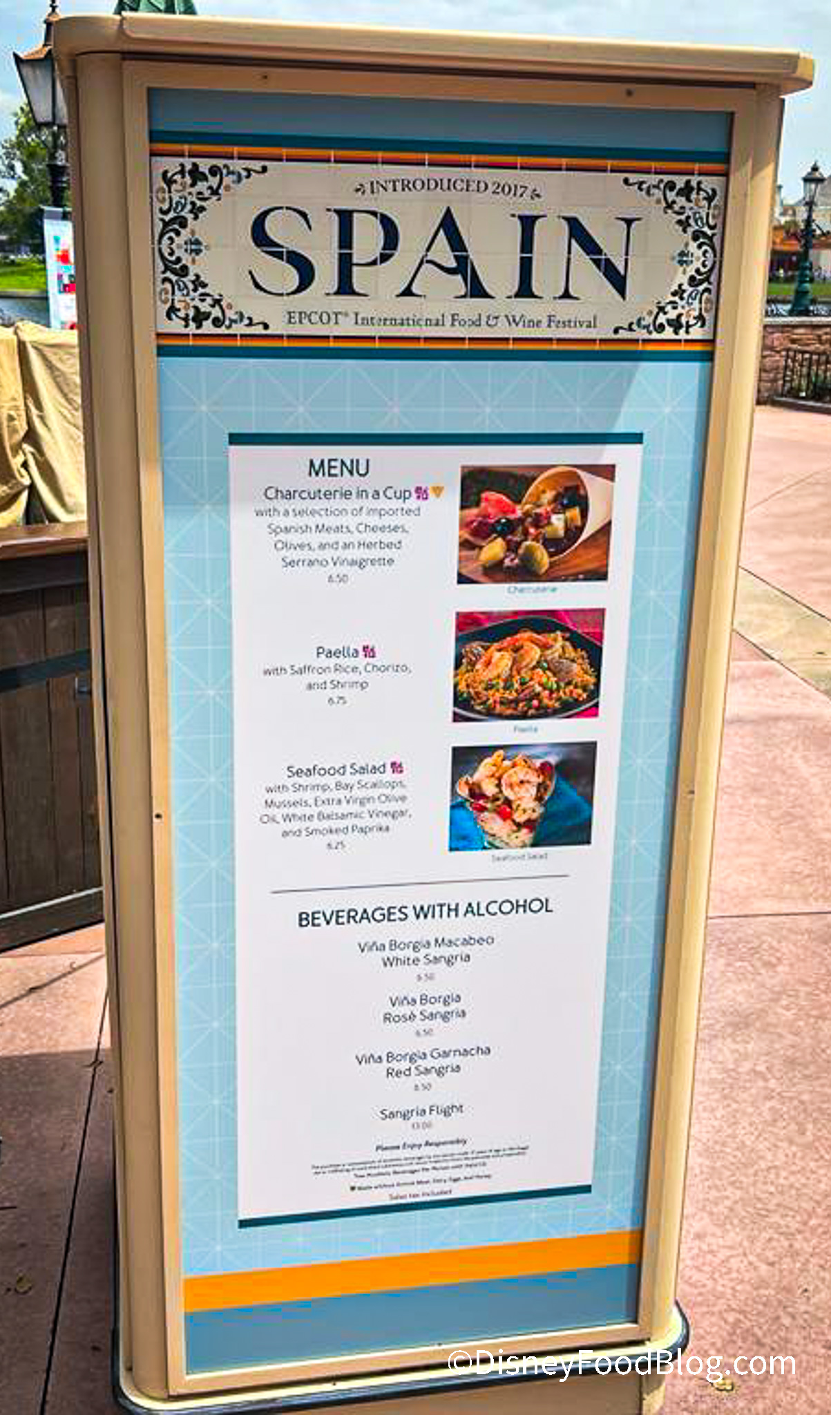 The Spain Booth is BACK for the 2024 EPCOT Food and Wine Festival! Click HERE for the 2024 Festival Menus!
