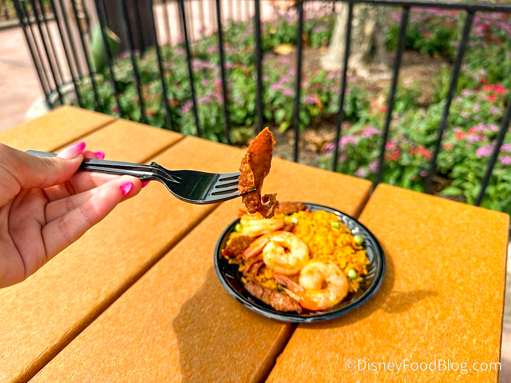 - Paella with Saffron Rice, Chorizo and Shrimp — $6.75, Disney Dining Plan Snack Credit Eligible