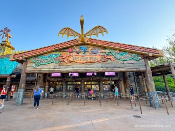 Spit Fyre Grill is housed near Isle of Berk’s Fyre Drill water attraction… and, in fact, it overlooks the ride.