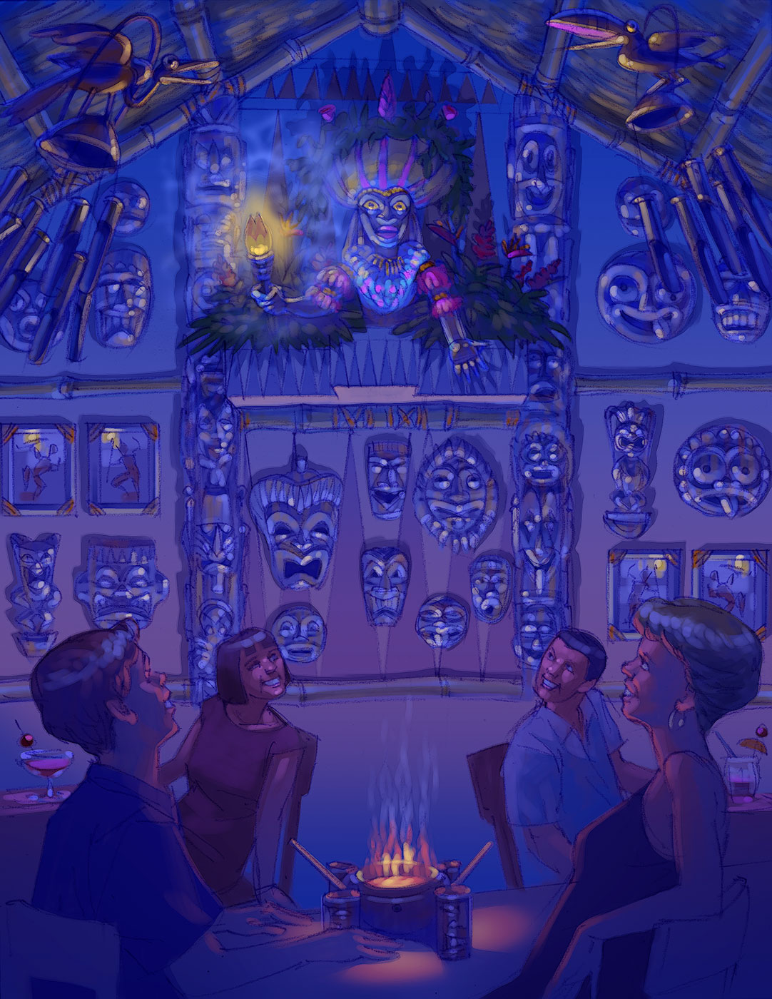 The most interesting thing to come out of the presentation is the subtle difference in themeing between the two different Trader Sam’s locations. While the Disneyland Trader Sam’s has a style more reflective of Disneyland’s Jungle Cruise ride — think African Queen — Imagineers have something entirely different in mind for the Grog Grotto.