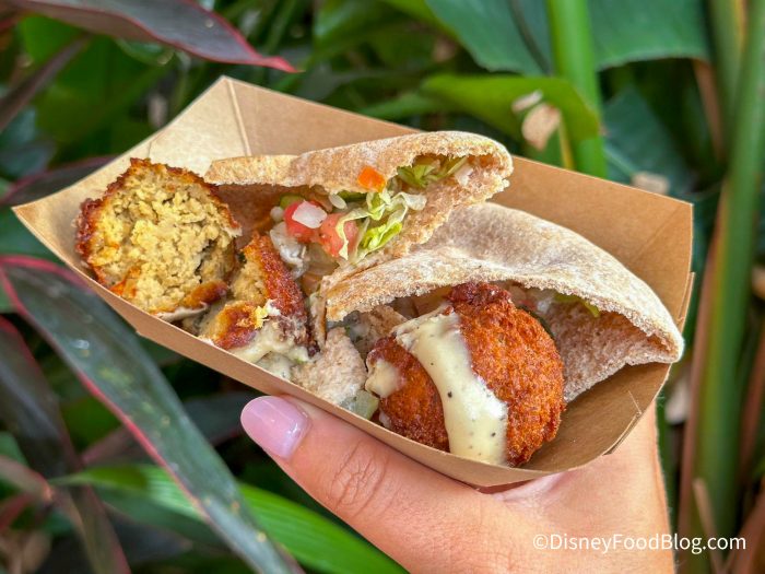 Craving Moroccan cuisine? Look no further than Tangierine Café: Flavors of the Medina at the 2023 EPCOT Food and Wine Festival! Grilled kabobs and a falafel pita are among the dishes.