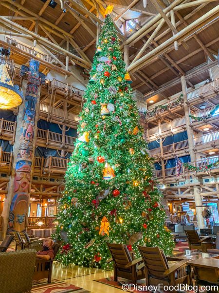 Deck the Halls! The Walt Disney World Resort hotel are decorated once more with their classic — and completely iconic — Christmas Trees, such as the stunner presented in the lobby at Disney’s Wilderness Lodge.