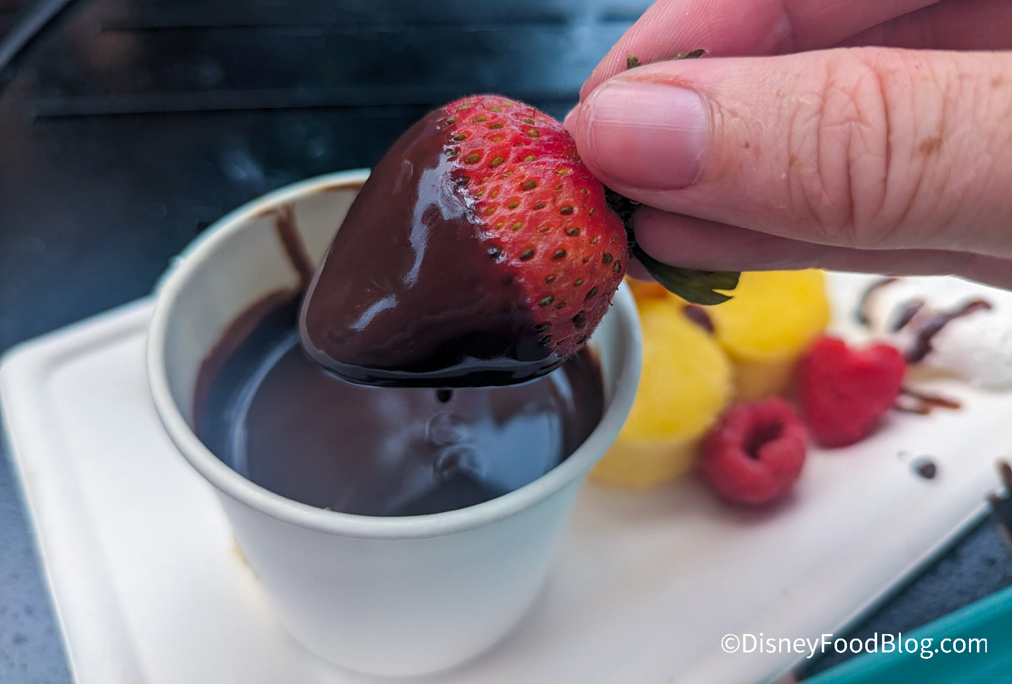 - Dark Chocolate Fondue with Berries, Pound Cake and Meringues (NEW) — $5.75, Disney Dining Plan Snack Credit Eligible