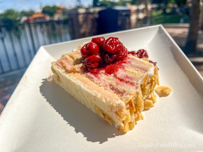 - Kirschwasser Torte with cherry-brandy buttercream, fondant, sugared almonds, and cherry compote (New) — $5.50, DDP Snack Eligible