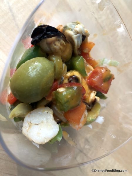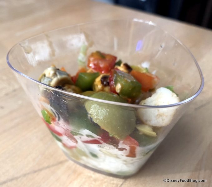 - Bloody Mary Seafood Cocktail: Shrimp, Bay Scallops, Mussels, Olive Salad and Crisp Lettuce in a Bloody Mary Vinaigrette – $6.00, DDP Snack Eligible