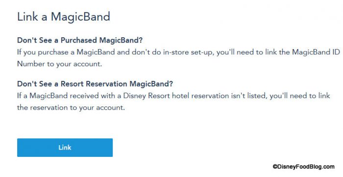MagicBands are automatically linked to your My Disney Experience account when purchased as a pre-order as part of a Resort reservation. Guests who purchase an individual MagicBand must manually link their new MagicBand to their My Disney Experience account. (If you have not registered for an account already, you may do so at disneyworld.com.)