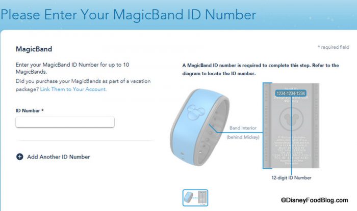 From here, simply enter the ID Number for your MagicBand to link! A diagram reminds you where you can find the ID number on your new MagicBand’s interior strap.