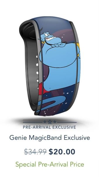 If you prefer a MagicBand with a design for your upcoming vacation, some are also available for purchase as a “Pre-Arrival Exclusive,” also at a special pre-order price. (These pre-order prices will also be available when MagicBand+ makes its debut.) For example, we spotted this Genie Pre-arrival Exclusive MagicBand available for $20, normally retailing for $34.99. (Prices may vary depending on design.)