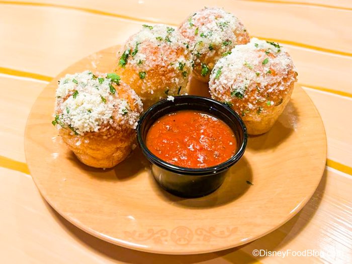 - Toadstool Cheesy Garlic Knots — Mini mushroom shaped knots brushed with garlic butter, parmesan cheese, parsley and a side of marinara sauce