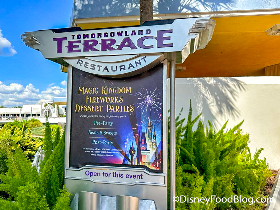 There are three versions of the Party from which to choose, and all offer a Dessert Buffet at the Tomorrowland Terrace Restaurant. Learn more about each option by clicking HERE.