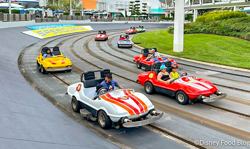 Get behind the wheel of your very own gas-powered car and “race” through the Tomorrowland Speedway!